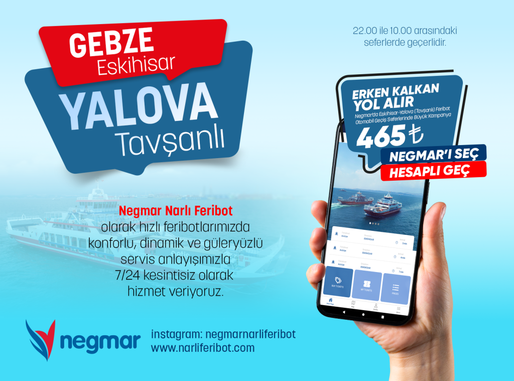 Negmar ‘da Eskihisar-Yalova (Tavşanlı) Feribot Otomobil Geçiş Seferlerinde Büyük Kampanya!
